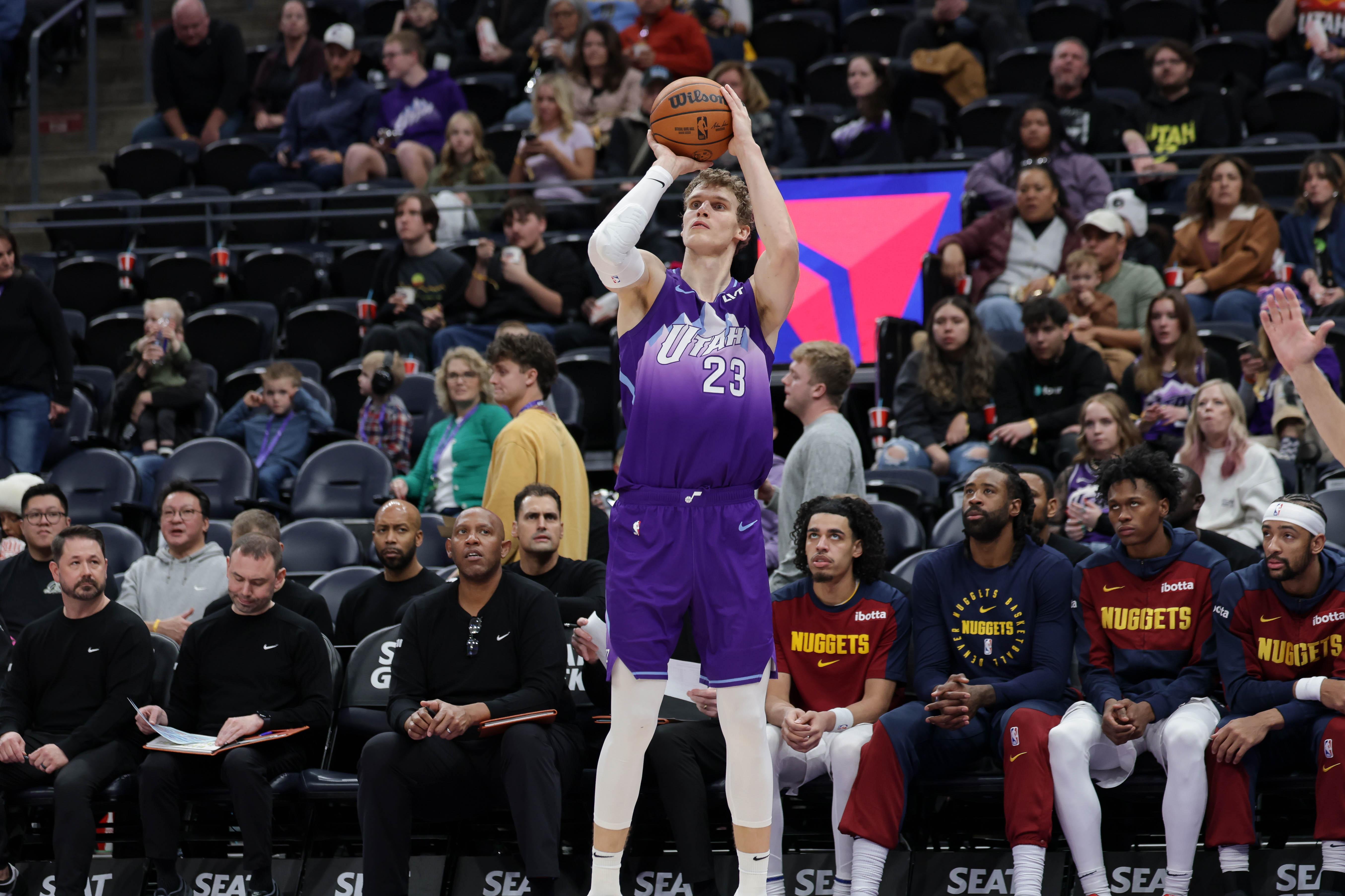在为爵士效力的两个健康赛季(2022-23和2023-24赛季)中,马尔卡宁场均可以得到24.5分、8.4个篮板并以39.5%的命中率投进3.1个三分球。